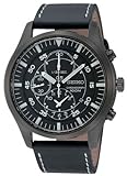 Reviews Seiko #SNDA21 Men's Black IP Military Leather Strap Chronograph Watch